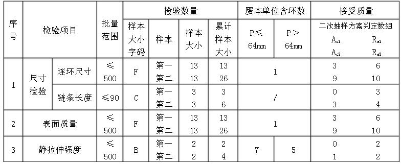 2.3圓環鏈尺寸檢驗結果的判定按表一執行。