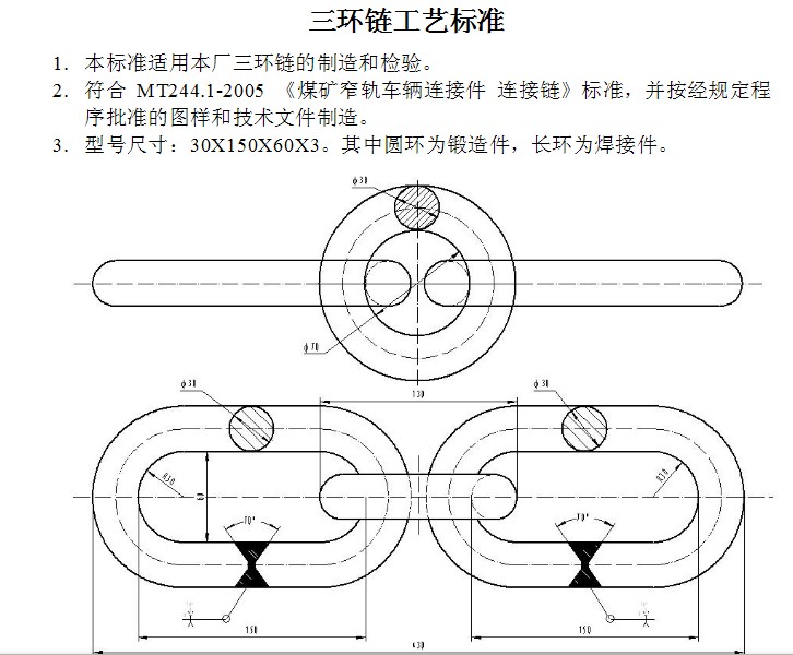鍛造、鍛打三環(huán)鏈規(guī)格參數(shù):