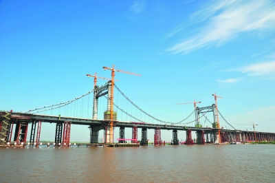 記者從哈爾濱市建委西部路網(wǎng)工程建設(shè)指揮部了解到,28日,陽(yáng)明灘大橋主橋已順利完成受力體系轉(zhuǎn)換,起初用于臨時(shí)支撐主橋的支墩已開(kāi)始拆除,吊索開(kāi)始受力。自此,扛起重達(dá)2萬(wàn)噸的陽(yáng)明灘大橋主橋的任務(wù)完全落在了196根吊索和主纜身上。本報(bào)記者 孫殿喜 攝